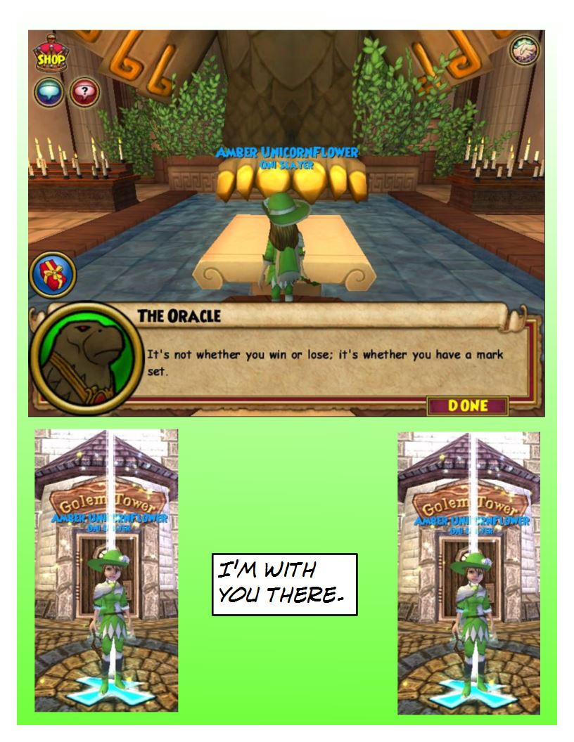 I happen to know that the person who suggested that saying for the Oracle is Arthur Wethersfield, and that Wizard101 isn't the first game that he worked on that he got the line into.